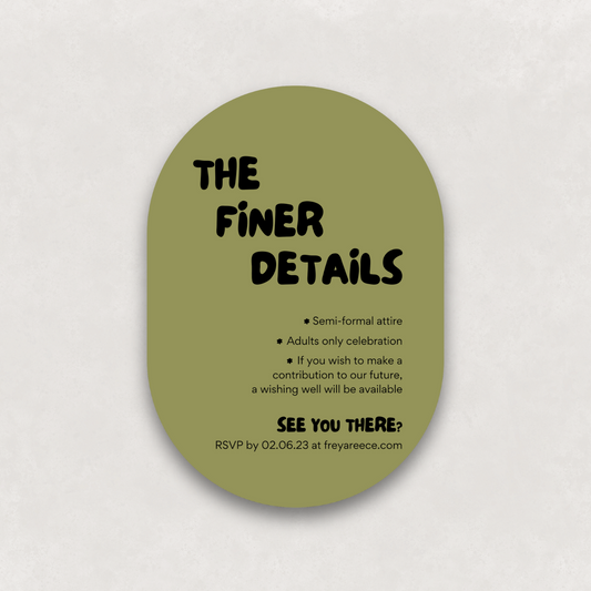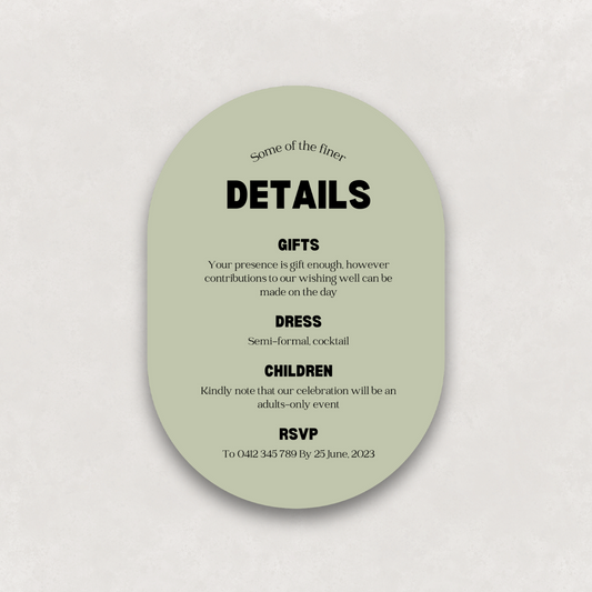 The perfect addition to your invitation suite, a details card provides guests with all the essential information they'll need.