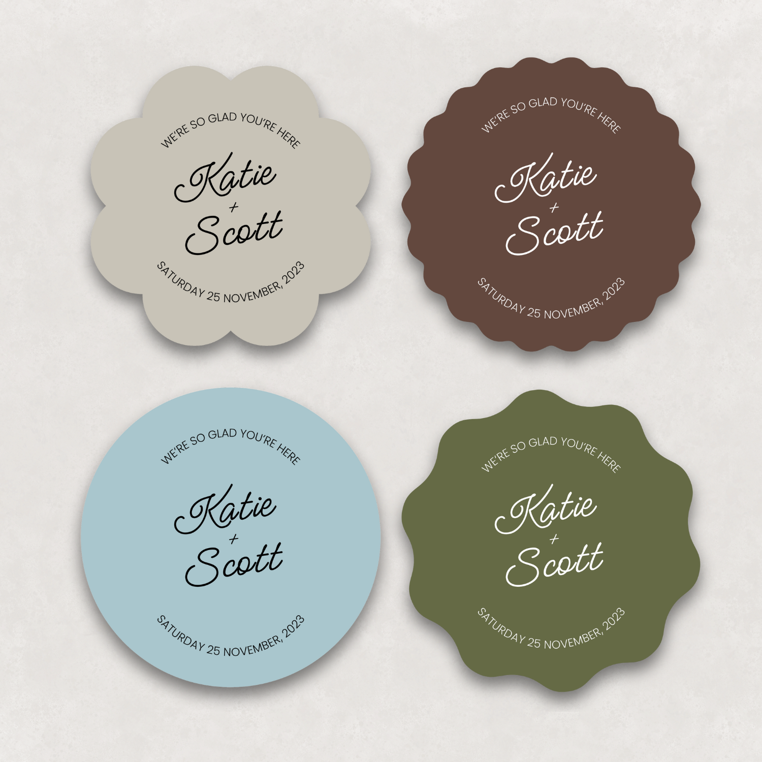 Designed to compliment your stationery suite, these coasters are a fun, functional keepsake your guests can enjoy throughout the celebration.